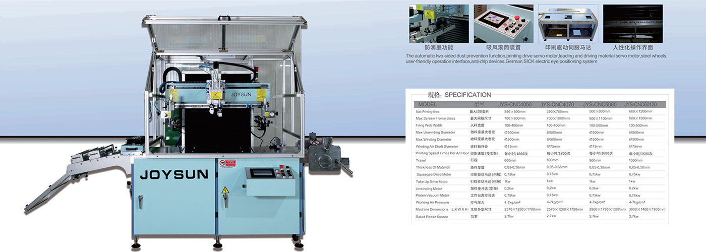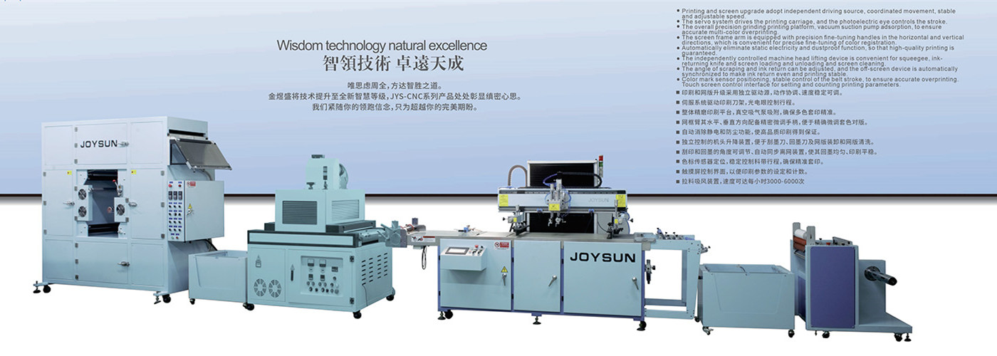 公司介紹:深圳市金煜盛網(wǎng)印科技有限公司是一家集研發(fā)、生產(chǎn)、銷售、技術(shù)支持為一體的生產(chǎn)商,專業(yè)制造全自動絲網(wǎng)印刷機,全自動絲印機,全自動網(wǎng)印機,全自動卷對卷絲印機,全自動卷對卷網(wǎng)印機,產(chǎn)品主要適用范圍為:PET、PVC、PC、B0PP薄膜等各種卷裝材料之網(wǎng)版印刷;適用于不干膠、轉(zhuǎn)印紙、特多龍、自粘商標紙,標簽銘牌銘板、薄膜開關(guān)和表面上光上色、IMD、IML、等各種卷裝材料。